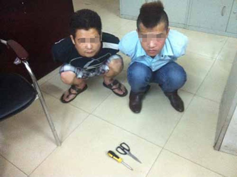 2013年5月30日凌晨1时53分左右,我处正在执行技术监控的工作人员发现在学生区4号宿舍楼有2人行迹可疑,其中一人试图打开一辆电动车的锁头,于是立即通知在学生区守候的“猎鹰”便衣队员,2名嫌疑人正准备逃跑时,被参加围捕的校卫队员抓获,当场缴获作案工具一批。经图像比对,嫌疑人廖某松(男、湖南津市人)、钟某辉(男、海南临高人)于2013年5月29日凌晨在1号宿舍楼盗窃一辆电动车。