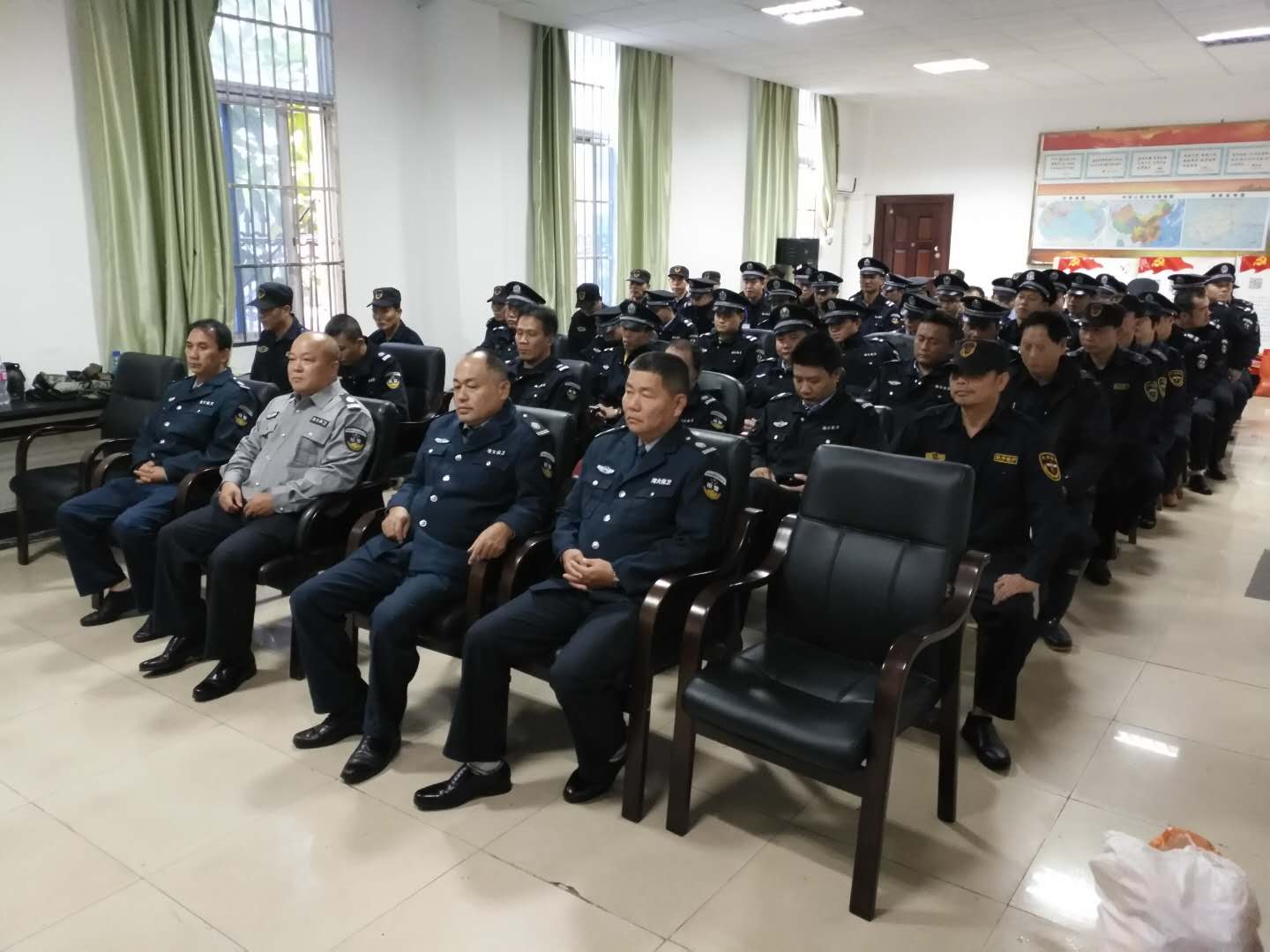 2017年11月21日,保卫处开展校卫队员第七轮警务培训,门岗警卫队员、巡逻队员、反恐防暴队员、消防应急队员等学习党的十九大报告,进行了警容警貌、文明执勤、警务能力、应急反应等技能培训和体能训练。本次培训由治安保卫科干警指导训练和考核点评,收到很好的训练效果。