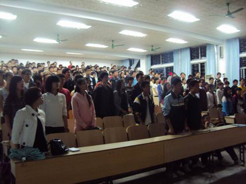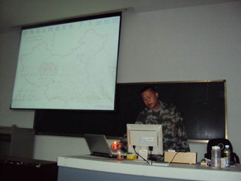 5.12大地震的阵痛还没有远离,今天玉树地震又让我们在添伤痛,4月14日7时49分,青海省玉树藏族自治州玉树县发生7.1级地震,给当地人民群众生命财产造成严重损失。地震灾情牵动着每个人的心,我海大学子虽人在校园,但心忧灾区。4月15日晚7:30分,在我校阶梯101课室,200多名海大学子在军事教研室黄海宁主任的组织下,为在玉树地震中遇难的同胞祈福。点燃一只蜡烛,照亮废墟下的黑暗,点燃一只蜡烛,为去往天国的同胞照亮前行的路。伴随着《手牵手》的感人歌声,祈福的烛光带着海大莘莘学子最美好的祝愿,祝愿受灾人民吉祥平安。我部国防教育教研室的其他老师也在上课过程中举行类似的活动,号召同学们为玉树加油、为青海加油、为中国加油。
