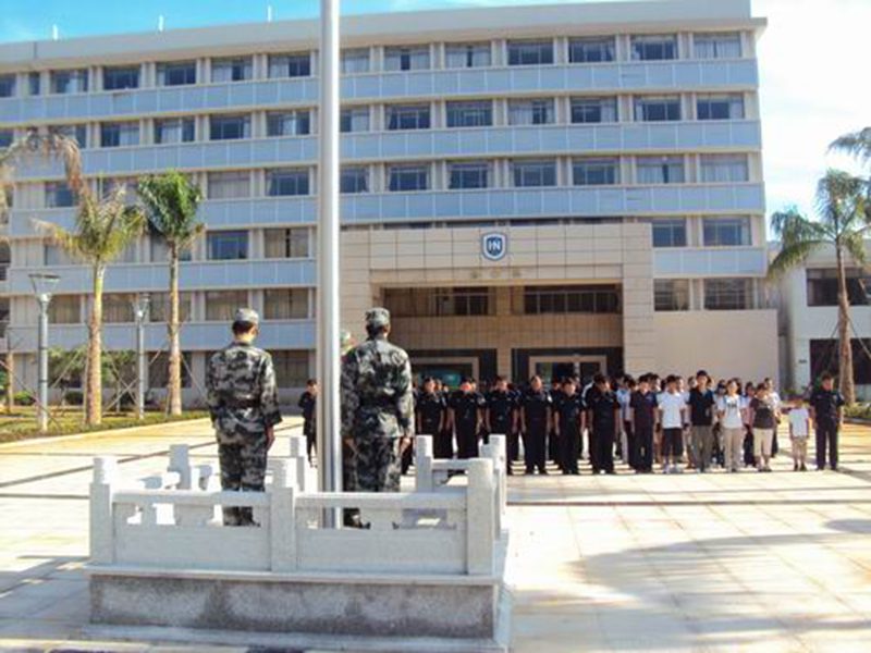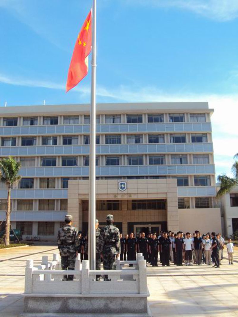 早上8点30分,在我处组织下,我海甸校区进行升降旗仪式。仪式分升国旗、奏唱国歌,降半旗、默哀一分钟三个程序进行。国旗徐徐升到旗杆顶部然后缓缓下降,我处全体工作人员和部分学生行注目礼,唱国歌,并默哀一分钟,场面庄严而肃穆。