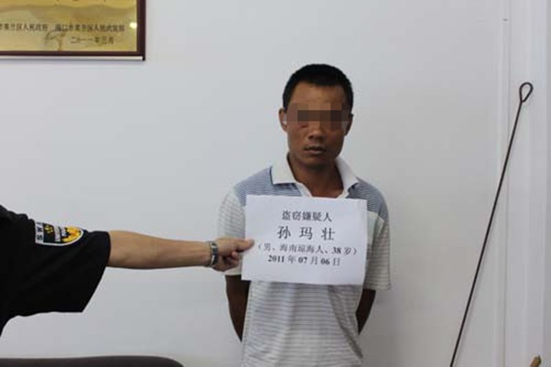 2011年7月6日上午8时20分左右,海甸校区保卫人员巡查到13号宿舍楼时,发现一中年男子形迹可疑,正当该男子准备下手盗窃自行车时,被我处校卫队员当场抓获,现场缴获作案工具——钳子一把。经询问嫌疑人名叫冯玛壮(男、海南琼海人、38岁),已移送人民路派出所处理。