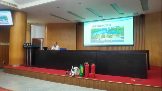 为进一步提高师生实验室消防安全意识和火灾防范能力,减少安全事故发生,根据《海南省教育系统2023年“安全生产月”活动方案》的通知要求,实验室与设备管理处联合保卫处于2023年6月13日在行政楼一楼报告厅开展实验室消防安全培训,共计200人参加了本次培训。