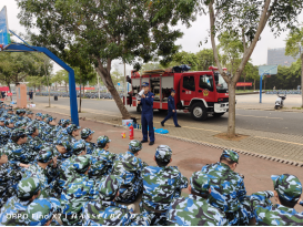 为了顺利开展此次培训,我处特邀美兰消防中队来我校进行培训指导。本次演练分为两个阶段:第一阶段为消防员为我校师生演示水枪、灭火器、灭火毯、防毒面具和消防服等消防器材的使用方式及注意事项。第二阶段是我校参训师生使用不同灭火器材进行灭火体验。