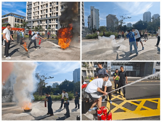 疏散集结完毕后,保卫处专业人员紧接着进行了灭火器实操教学。工作人员现场详细讲解并演示了干粉灭火器的“提、拔、握、压”四字使用口诀及初期火灾扑救的关键要点。在专业人员的悉心指导下,师生们踊跃参与,分组进行了灭火器实际操作,亲身体验了扑救初起火灾的过程,有效强化了对消防器材的使用技能和初期火灾应对能力。