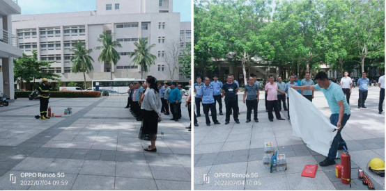 为了提高保卫处职工及门岗保安人员扑救初起火灾的能力,及时处置校园突发火情,7月4日至7月5日分4批在社科楼一楼B区门口开展消防安全能力培训,参加培训101人。