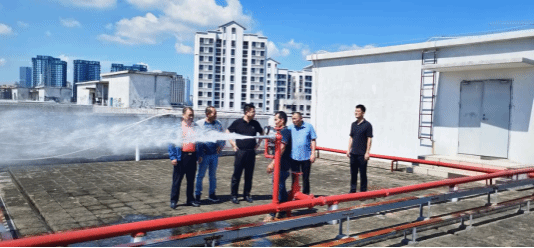 虽然落实工作困难重重,但保卫处不等不靠,依据消防专家建议,使用本处业务经费,从管网供水井重新铺设明管直接接入李运强楼,并完成楼顶 ABC 三栋楼消防管网并网。经测试,消防水压达到 6 个标准,花小钱办大事,成功解决了李运强楼长期消防用水不足的难题,为校园消防安全提供了有力保障。